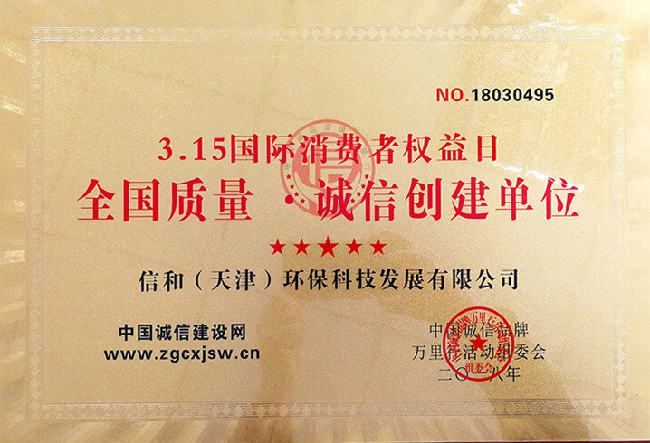 “質量就是生命”。信和重質量、守信用,被中國誠信品牌萬里行推薦“誠信示范單位”、“AAA資信等級”、“AAA級誠信經營示范單位”、“誠信經理人榮譽證書”、“誠信企業家榮譽證書”、“中國產品質量放心達標企業”、“誠信品牌聯盟會員單位”、“中國質量誠信AAA級品牌企業”、“中國百強優秀企業”、“節能環保推廣產品”、“全國科技創新企業”等榮譽稱號。
